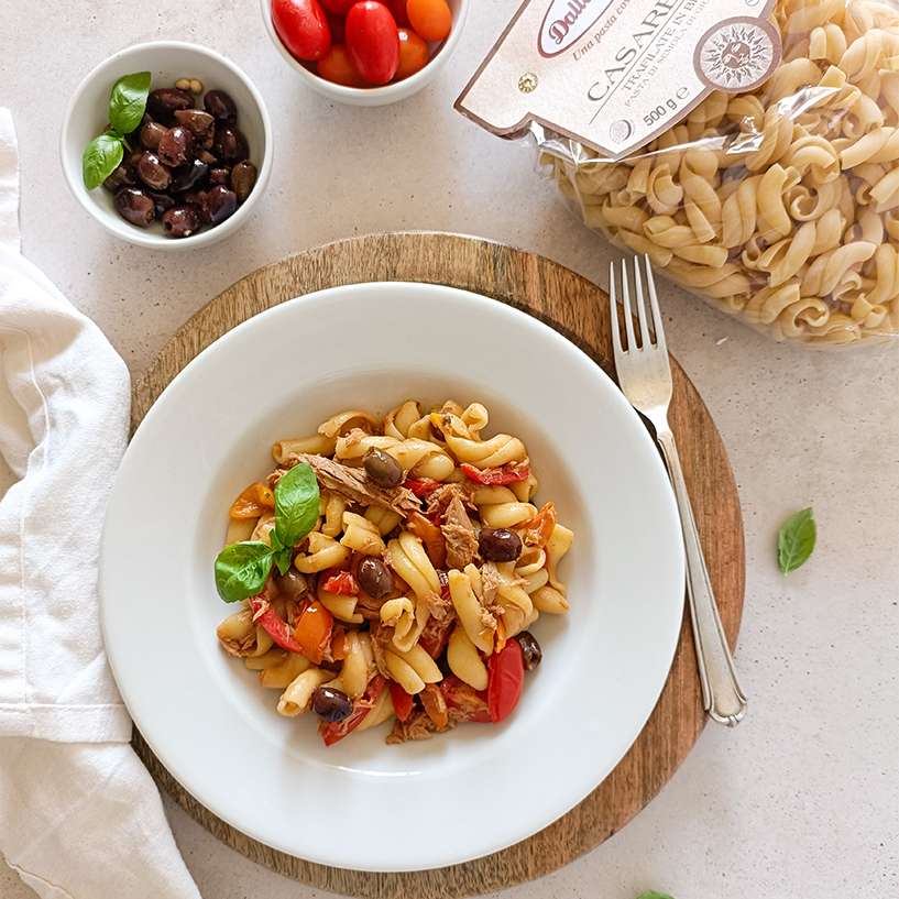 Scolala e condiscila con il pesto alla trapanese.